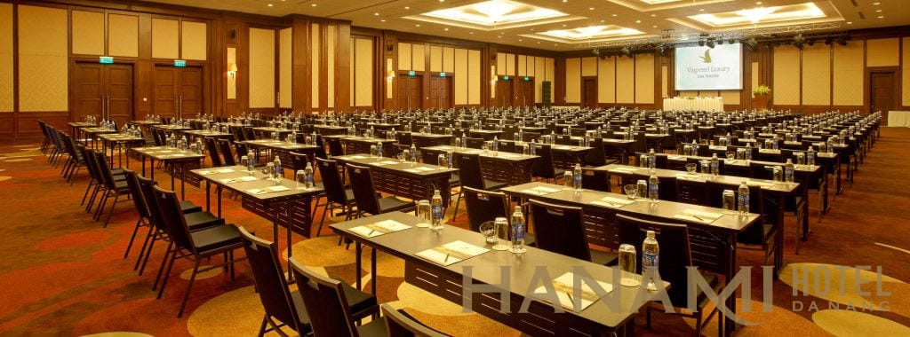 Một dịch vụ tiện ích quan trọng khác mà review Vinpearl Luxury Đà Nẵng muốn giới thiệu đến cho bạn chính là hệ thống phòng họp hiện đại, sang trọng, đa dạng các loại diện tích lớn nhỏ cùng với khu tổ chức hội nghị, hội thảo với sức chứa lên đến 550 người. Ngoài ra, không gian cũng vô cùng thích hợp để tổ chức tiệc cưới, tiệc sinh nhật hay các sự kiện quan trọng khác.